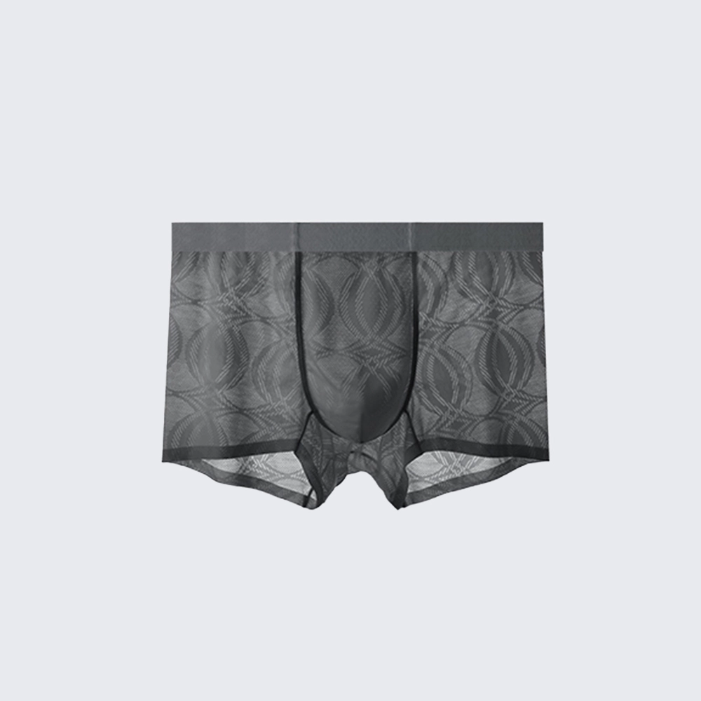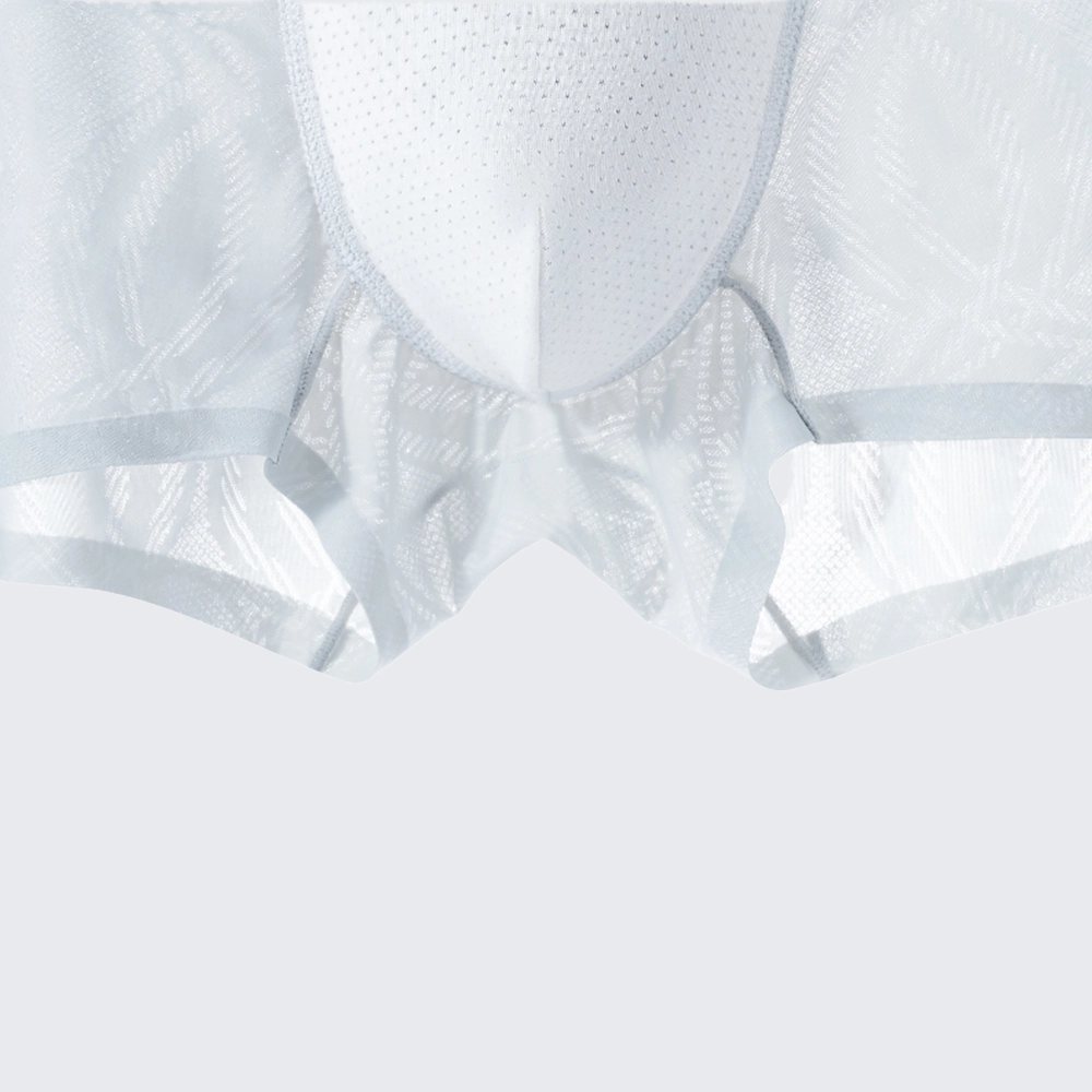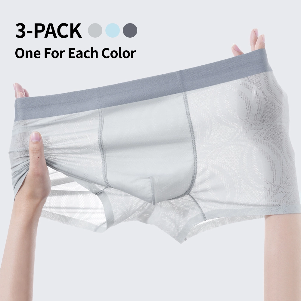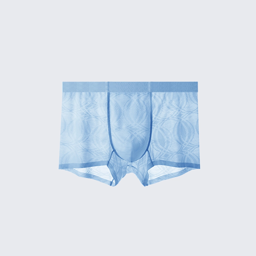 These men's boxer briefs feature ice silk fabric with antibacterial jacquard, offering breathable, quick-dry comfort for summer wear.