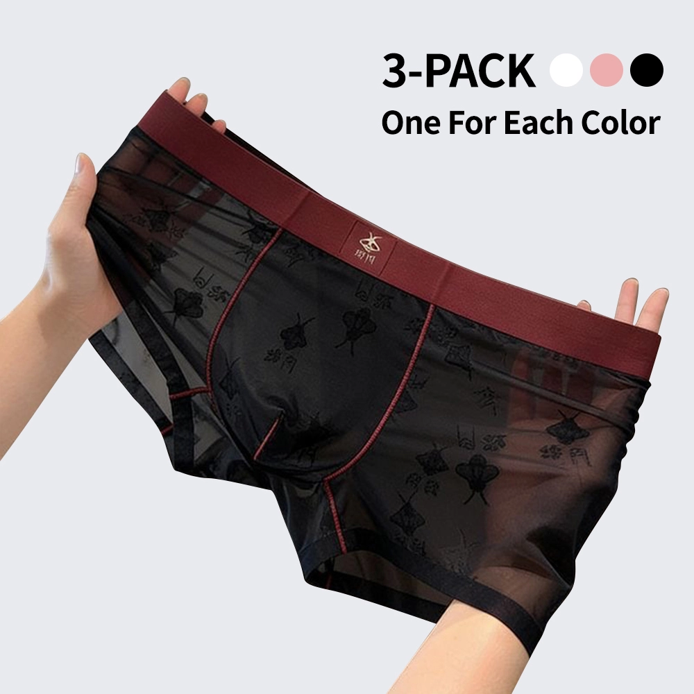 These men's boxer briefs are made of ice silk with a seamless jacquard design, offering ultra-thin, breathable comfort for daily wear.