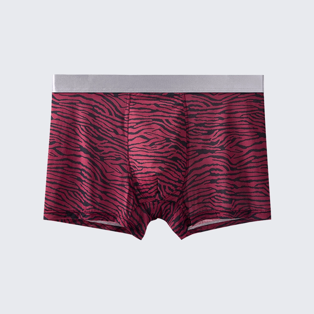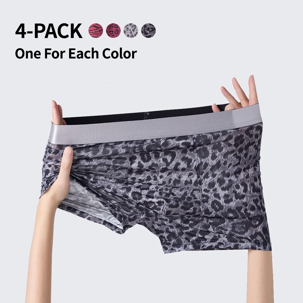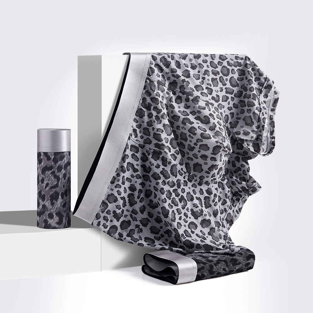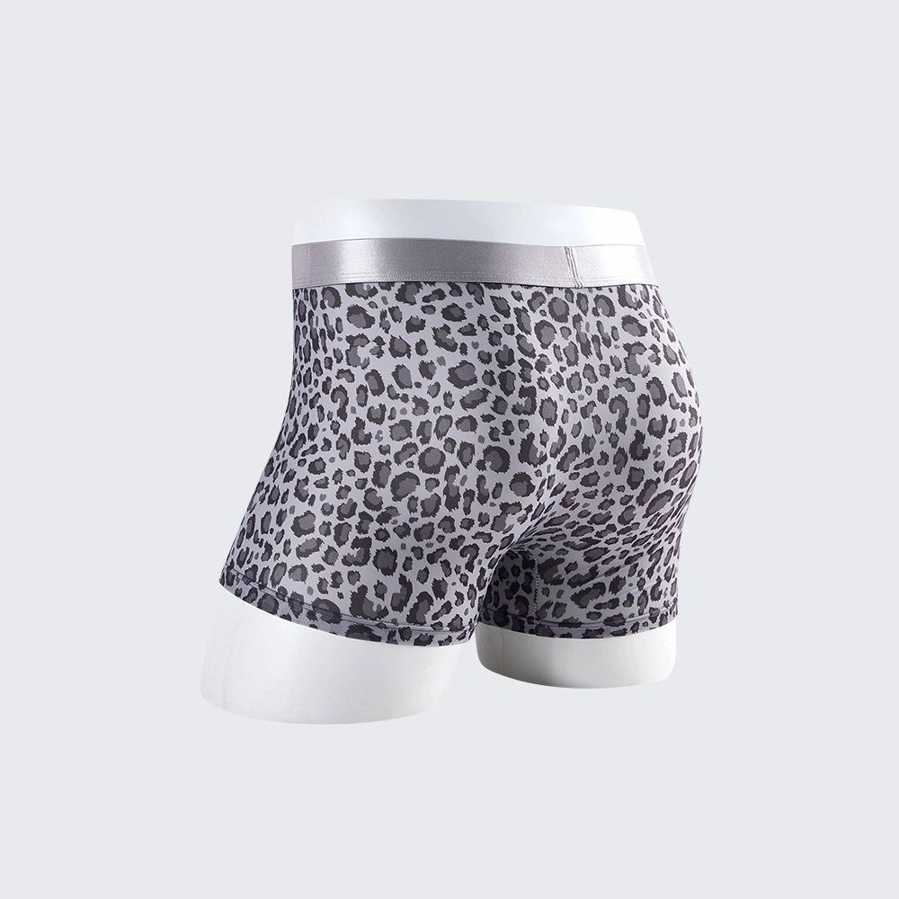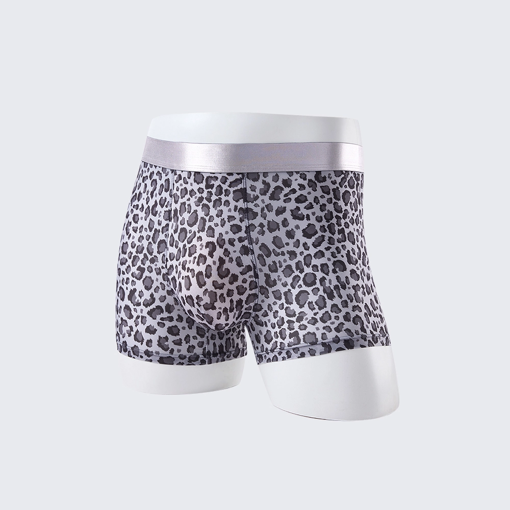 These men's low rise leopard print boxer briefs feature a mulberry silk crotch, offering a sexy, breathable fit for all-day comfort.